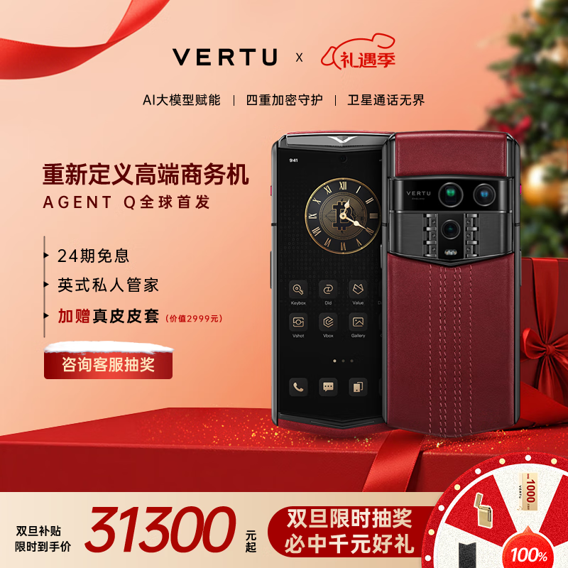 VERTU【新品上市 大额补贴】威图纬图AGENT Q奢品AI智能体手机旗舰高端商务直面屏安全加密三系统礼品 酒红绗线【京仓速发】 16GB+1TB