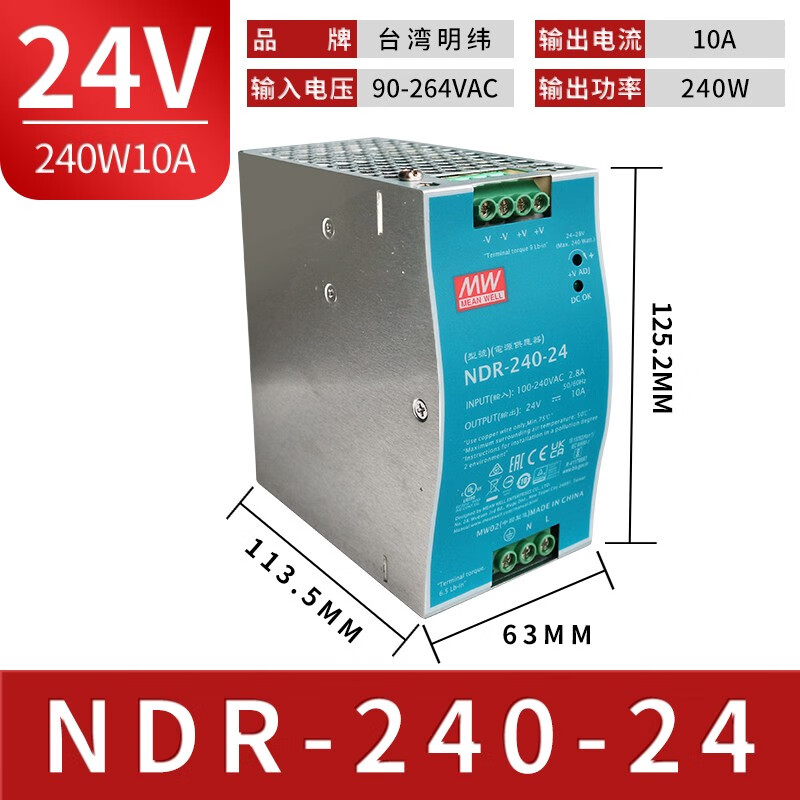 明纬(MEANWELL)台湾明纬NDR-240系列导轨式24V48V开关电源240W工控稳压 NDR-240-24【24V10A】