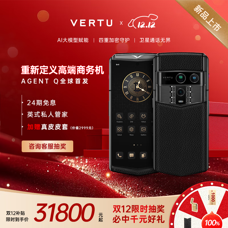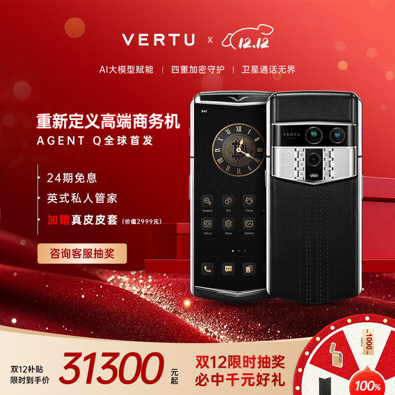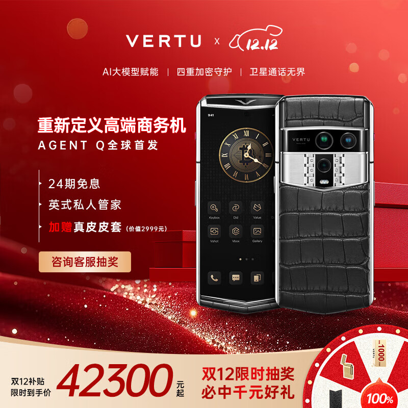 VERTU【新品上市 大额补贴】威图纬图AGENT Q奢品AI智能体手机旗舰高端商务直面屏安全加密三系统礼品 玄铁黑高定款 16GB+1TB
