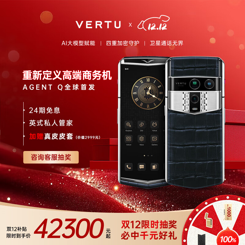 VERTU【新品上市 大额补贴】威图纬图AGENT Q奢品AI智能体手机旗舰高端商务直面屏安全加密三系统礼品 静谧蓝高定款 16GB+1TB