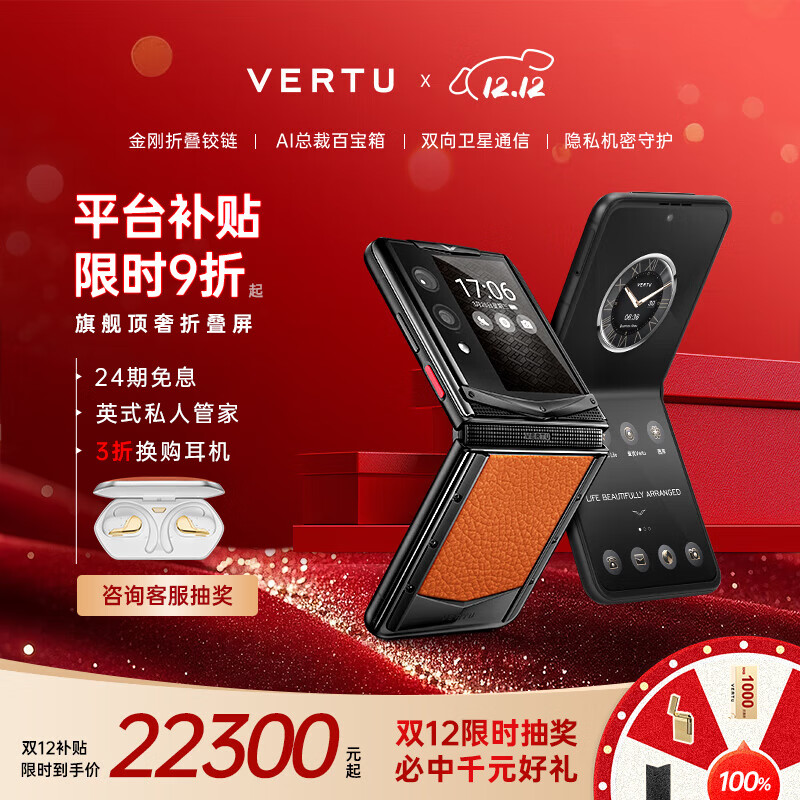 VERTU【大额补贴 历史底价】威图纬图奢品手机QUANTUM新品量子AI智能体小折叠屏手机FLIP商务礼物礼盒 火山红缠丝玛瑙 16GB+1TB 官方标配