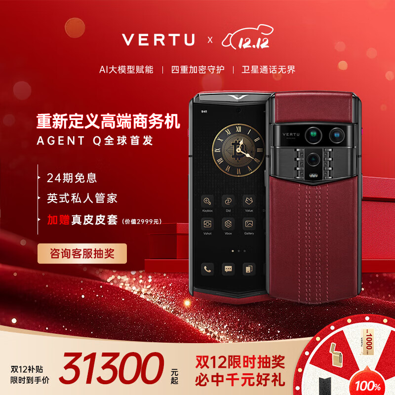 VERTU【新品上市 大额补贴】威图纬图AGENT Q奢品AI智能体手机旗舰高端商务直面屏安全加密三系统礼品 酒红绗线【京仓速发】 16GB+1TB