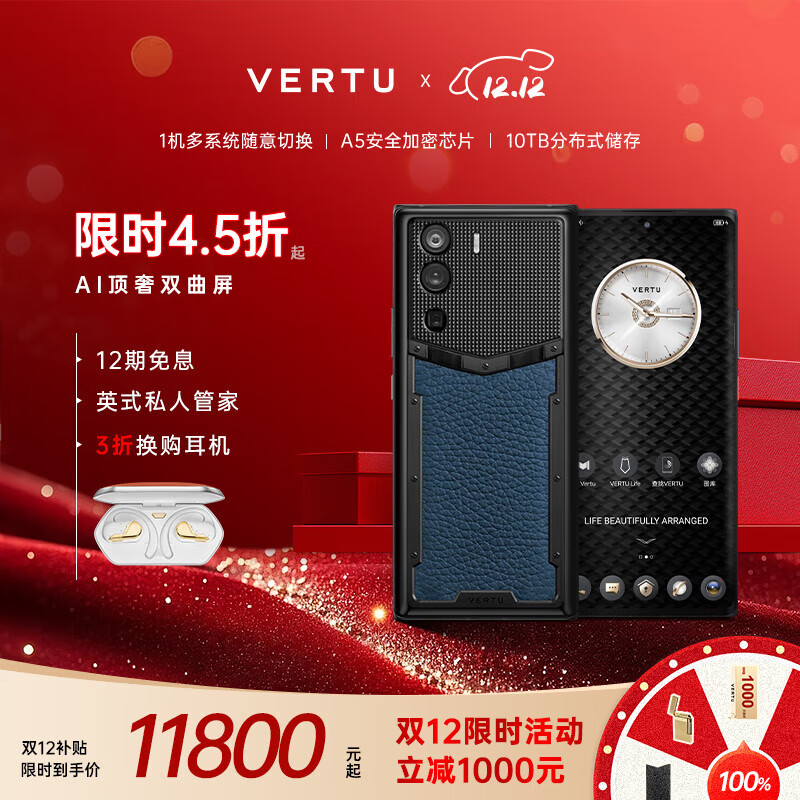 VERTU【抢半价购 下单省万元】威图纬图奢品加密手机META双曲屏AI智能体手机5G商务高端礼物补贴17pro 绅士蓝小牛皮 18GB+1TB
