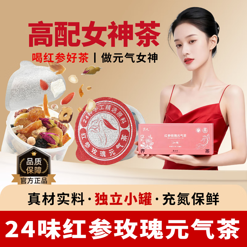 杞硕红参玫瑰元气茶10罐气血养生茶玫瑰花茶礼盒女士茶包 红参玫瑰茶元气10罐装