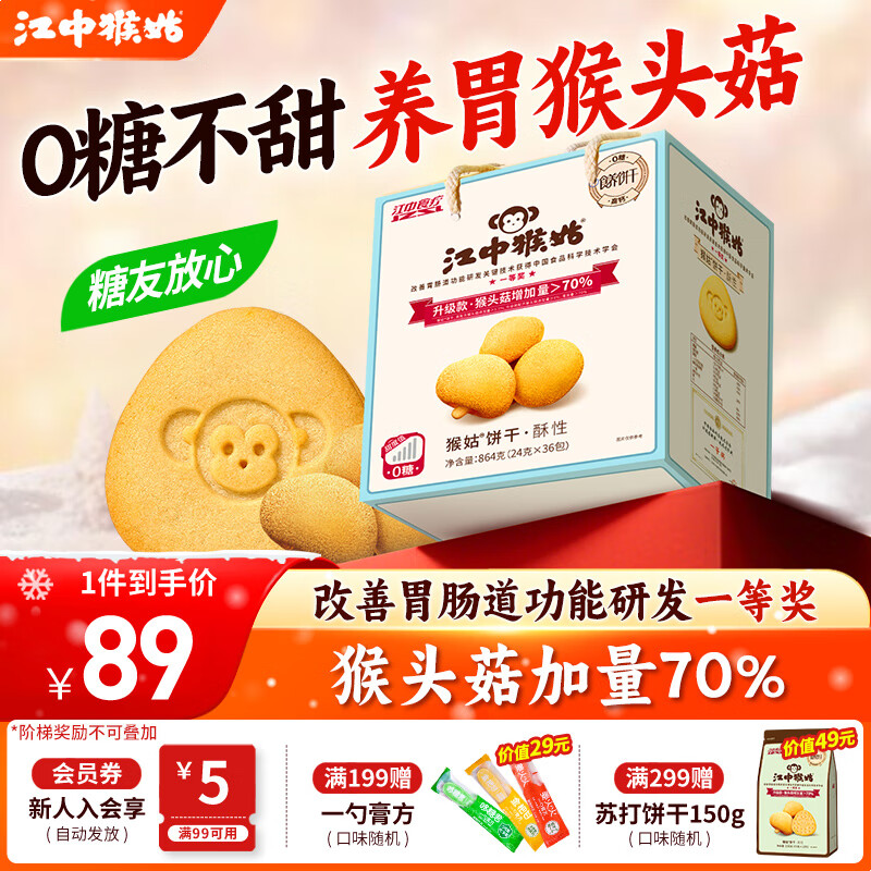 江中猴姑饼干猴头菇酥性养胃饼干营养休闲零食糖友代餐高钙食品礼品送长辈 0糖高钙丨不甜版礼盒864g