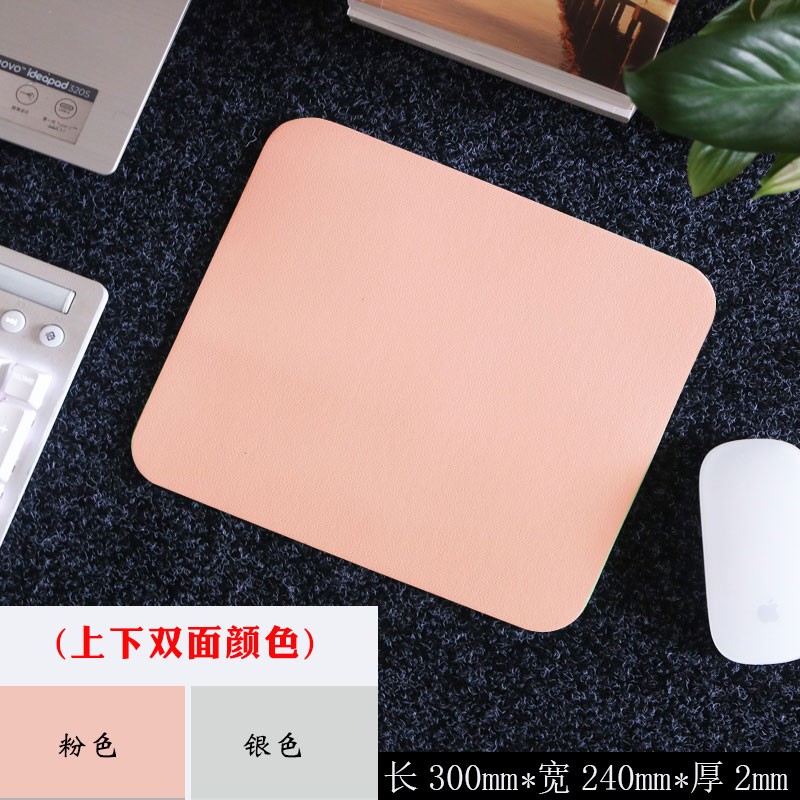 升派苹果联想戴尔华硕笔记本鼠标垫小米升派华为纯色简约皮革办公桌垫小号鼠标垫防水垫可爱女生鼠标皮革垫子 粉色+灰色(大号方)
