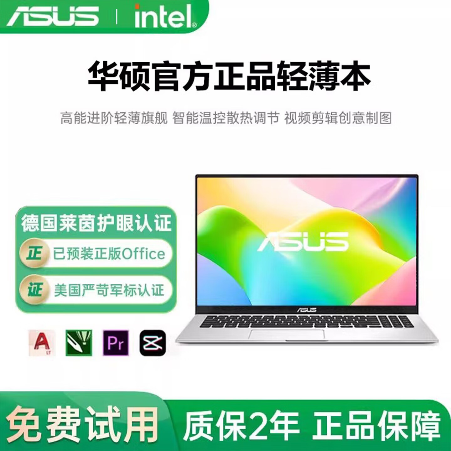 华硕(ASUS)Asus/华硕笔记型电脑 办公学生超薄笔电程式设计高清i7独立显示卡游戏本 i7-1065G7 15.6寸 窄边框 512G固态硬碟 8GB