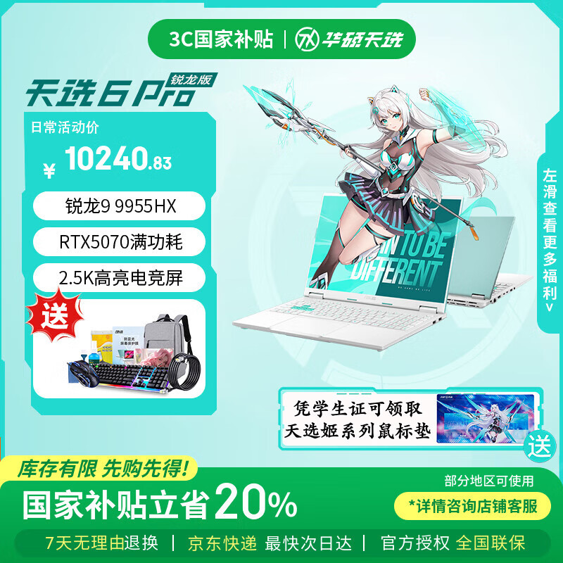 »ªË¶ÌìÑ¡6 Pro ÈñÁú°æ ¹ú¼Ò²¹Ìù20% 16Ó¢´çÓÎÏ·±¾ ±Ê¼Ç±¾µçÄÔ ÈñÁú9 9955HX/RTX5070/ħ»ÃÇà 16GÄÚ´æ/1T¸ßËÙ¹Ì̬ӲÅÌ 2.5K 16:10¸ßË¢¸ßÁÁ¸ßÉ«Óòµç¾ºÆÁ