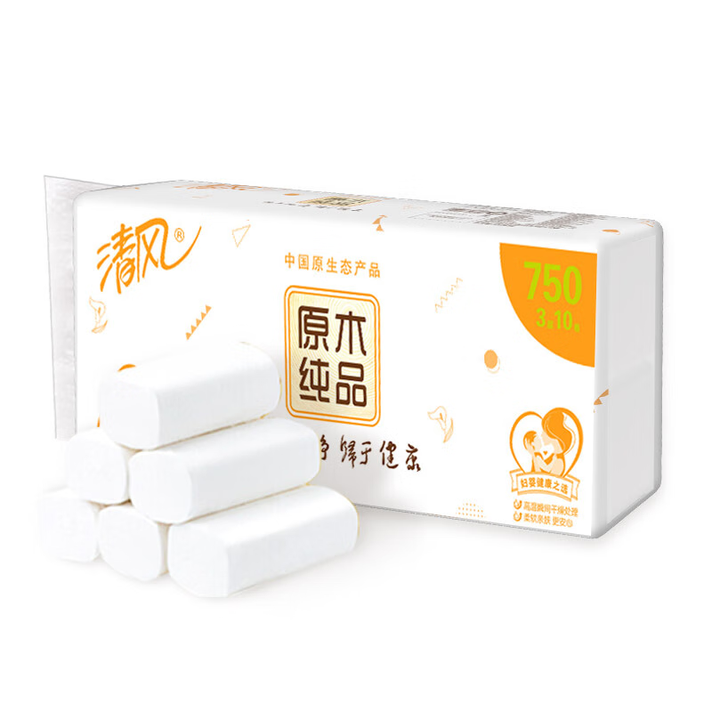 清风卷纸无芯原木原木纯品750g厕纸手纸卫生纸长卷纸巾家用实惠装卷筒纸家庭装 一提10卷