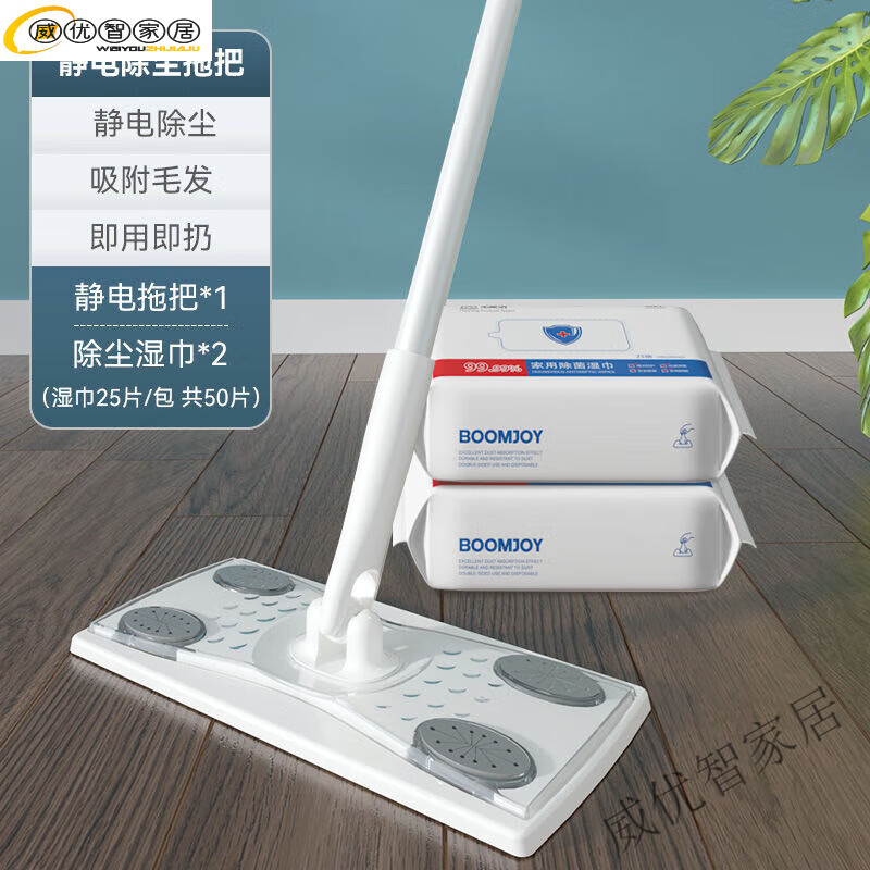 莎庭(SARTILL)莎庭2024品质精选boomjoy拖把宝洁静电免手洗一次性除尘纸用一拖 除尘拖把+湿巾2包