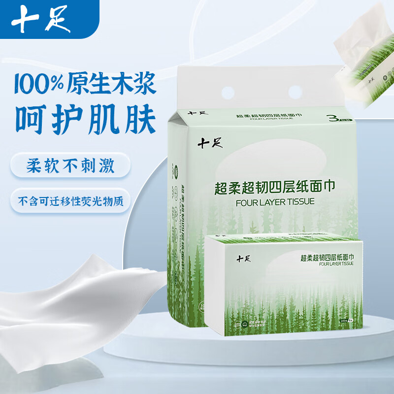 十足纸巾面巾餐巾纸柔韧臻品4层加厚囤货家庭实惠装100抽 柔韧臻品纸面巾 4层 100抽*8提