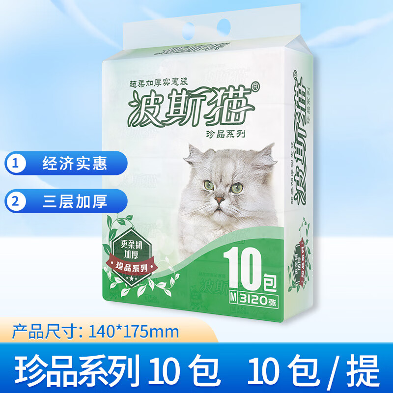 波斯猫抽纸珍品312张3层清仓可湿水餐巾纸面巾纸家庭装学生宿舍用纸巾 珍品系列 限用日期至26年11月 3层 312张*10包