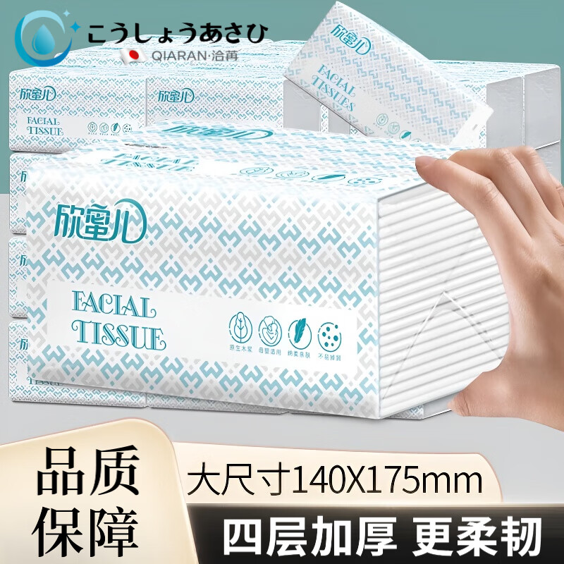 洽苒日本品牌抽纸纸巾整箱家庭装420张大包家用餐巾纸婴儿卫生纸面巾 【体验装】 1层 1抽*18包