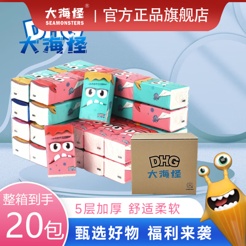 大海怪食品级抽纸纸巾整箱面巾纸5层20包/箱家庭装无香 5层 90抽*20包