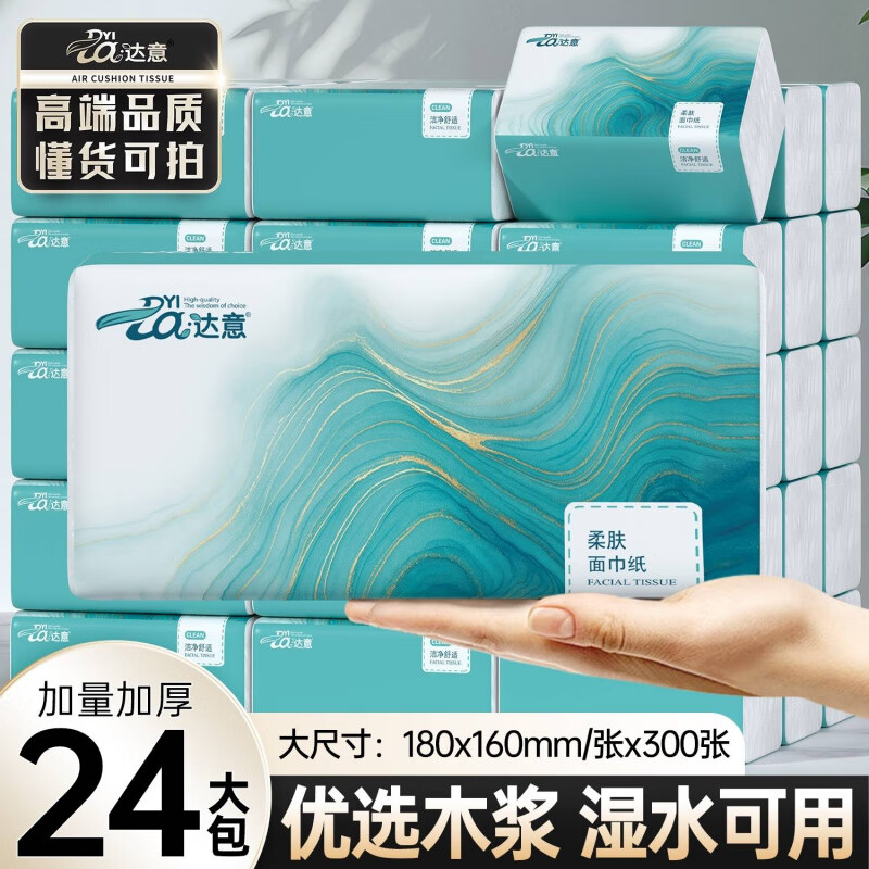 达意(Dy)抽纸整箱家庭装可湿水卫生纸餐巾纸擦手纸学生宿舍厕纸生活用纸 高端品质:24包【宿舍/家庭装】