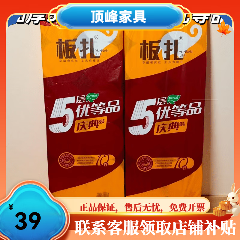 板扎卫生卷纸优等品庆典装加厚5层原生木桨1提10卷家庭宿舍实惠装正品 5层 195节*10卷