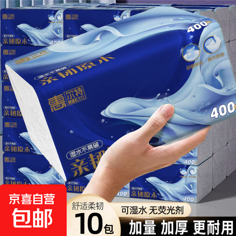 惠尔特400张大包抽纸批发四边压花纸巾纸品擦手纸学生宿舍家庭装 四边压花可湿水 5层 400张*10包