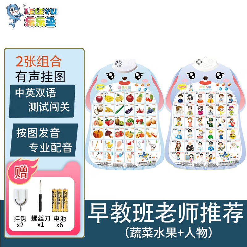 乐乐鱼(leleyu)卡通兔有声早教挂图儿童玩具宝宝识字表2张墙贴男孩女孩生日礼物