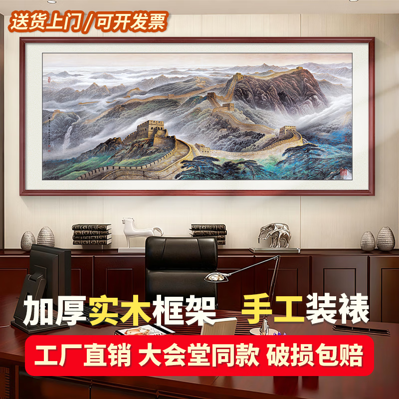 弥锦万里长城靠山图山水画老板办公挂画会议室装饰字画客厅沙发背景墙 05款-万里长城 高清有机玻璃面 118X48cm 免费安装 红木色实木框(顺丰包邮)