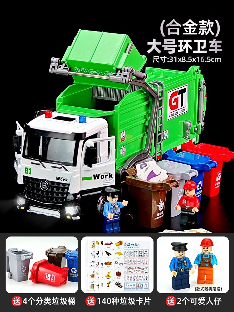 合金环卫垃圾车儿童玩具超大号清运工程车分类垃桶男孩小汽车模型 主图款环卫车有音效可开车合金