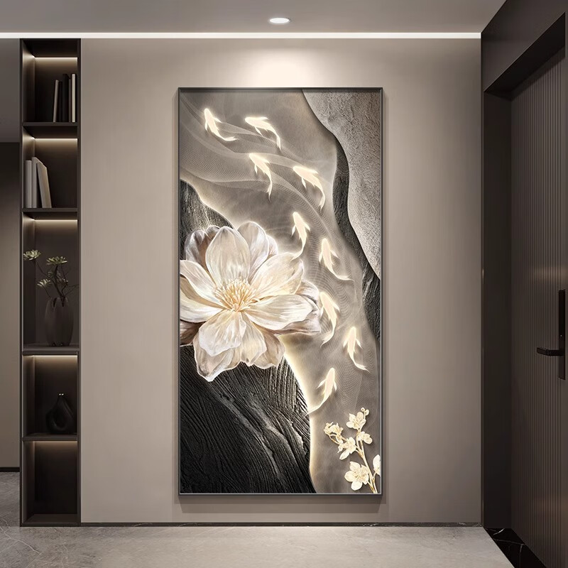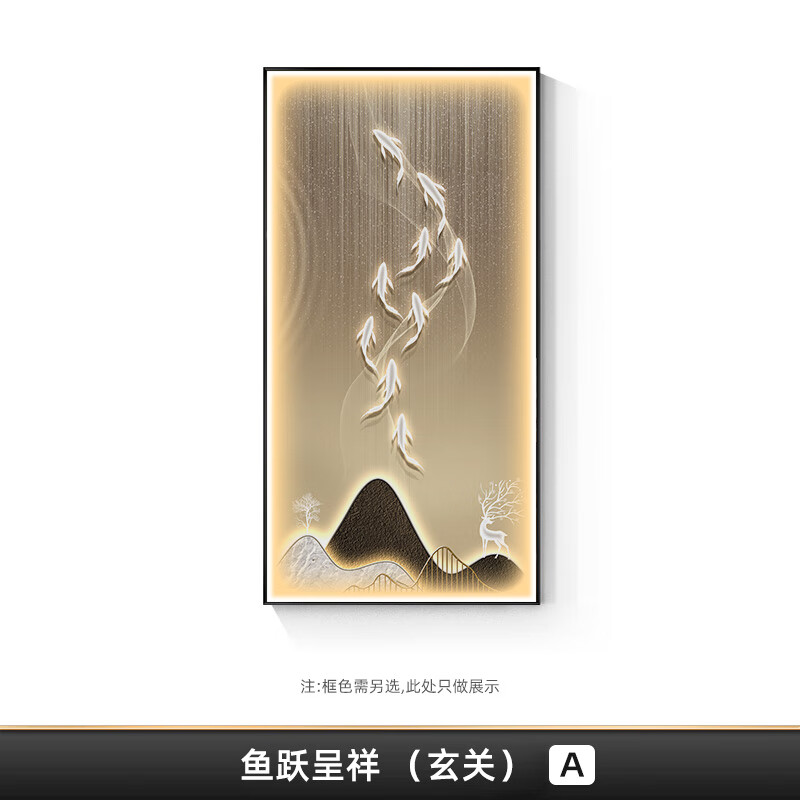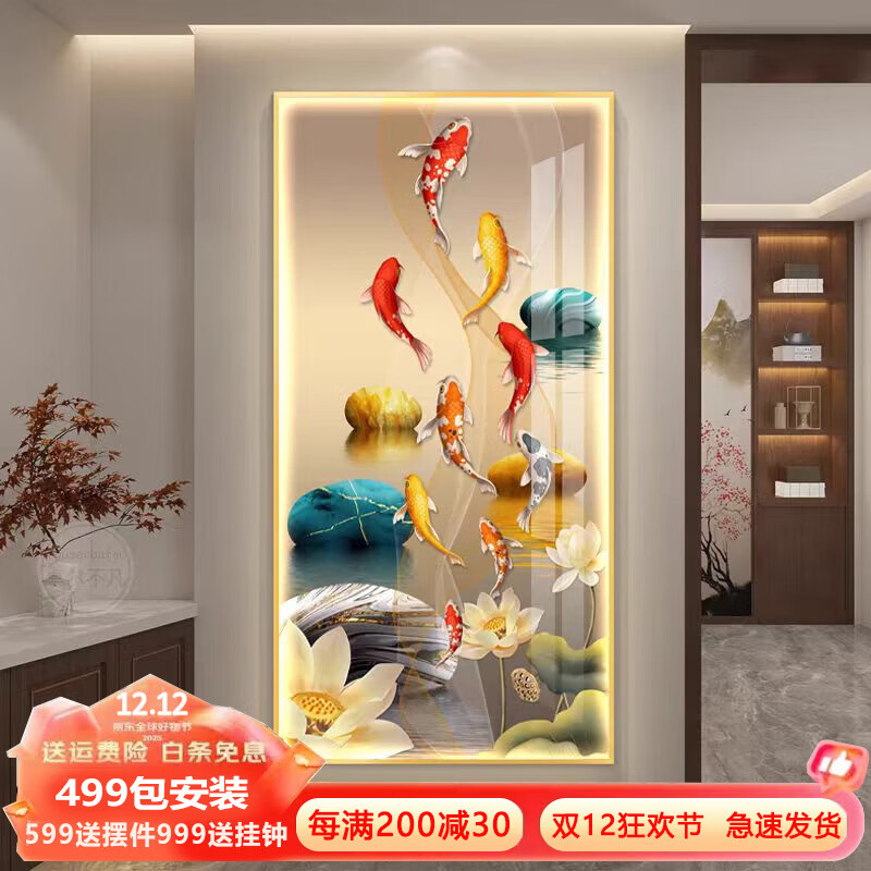玄关装饰画九鱼图led灯光挂画入户正对门走廊过道墙壁画2025新款 01款-年年有鱼 30X60(晶瓷平面+不带灯)