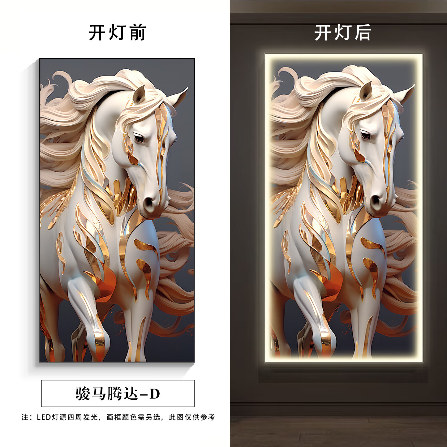 马到成功入户玄关装饰画骏马图客厅壁画现代轻奢走廊过道尽头挂画 01款-骏马腾达 30X60(晶瓷平面+不带灯)