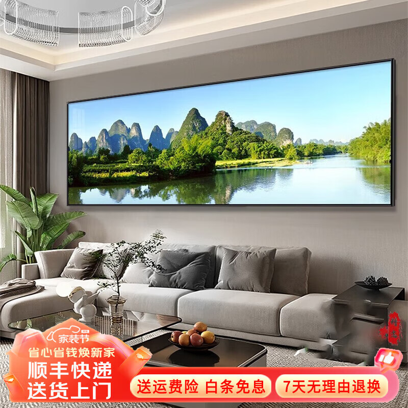 2025最新款客厅装饰画沙发背景墙挂画现代简约山水画背景图墙壁画 桂林山水 有机玻璃200*80铝合金金框