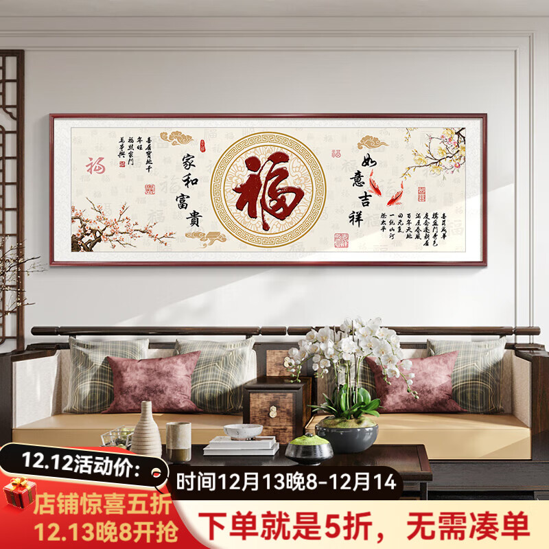 良木福字装饰画新中式客厅沙发背景墙挂画百福图高档大气2025新款壁画 A-福气满满 170*60cm-雅致红木框+有机玻璃