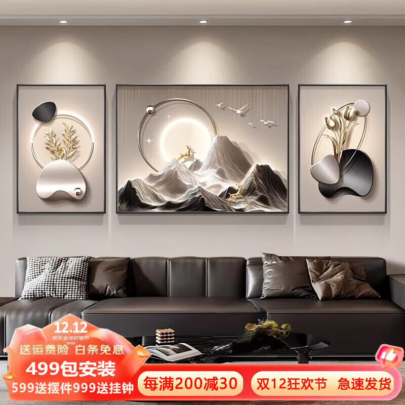 城篇背有靠山客厅装饰画沙发墙背景画挂画高级感办公室背景墙靠山图 T133392背有靠山 30*40/60*40/30*40 高清质感纹理面+PS环保边框 典雅黑框