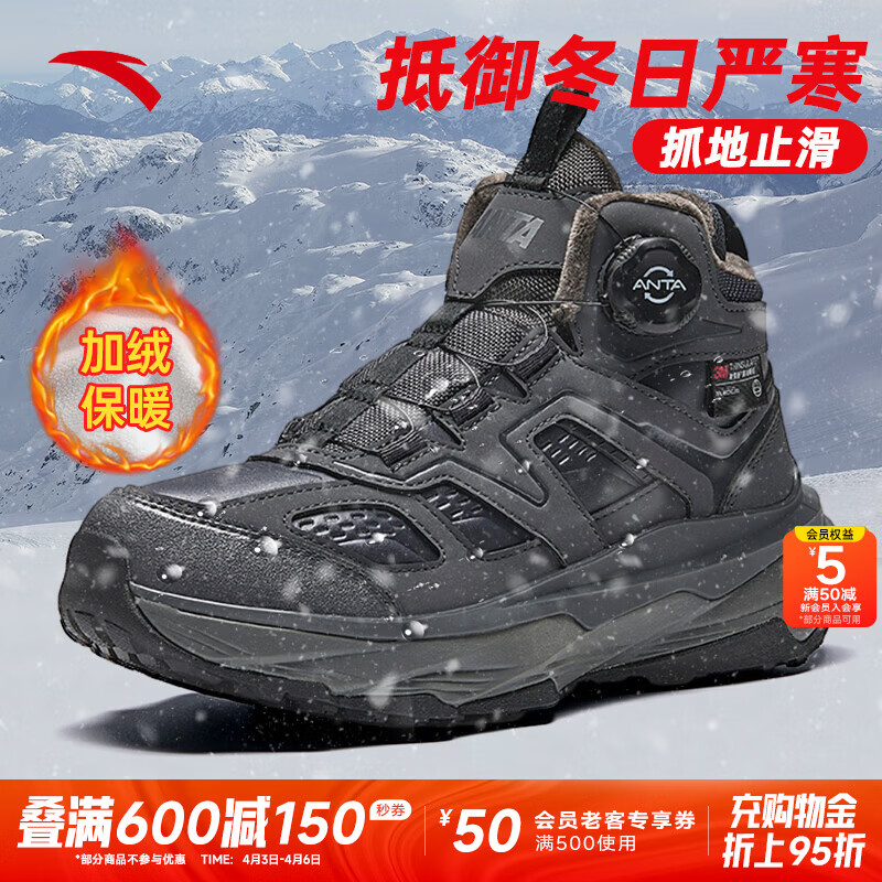 安踏行者大棉鞋休闲鞋男鞋革面加绒加厚保暖厚底雪地靴运动鞋子