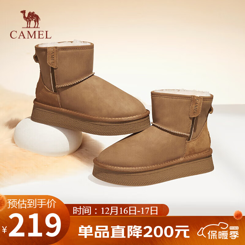 骆驼(CAMEL)雪地靴女时尚保暖棉鞋套筒厚底面包鞋 L24W275655 驼色 38