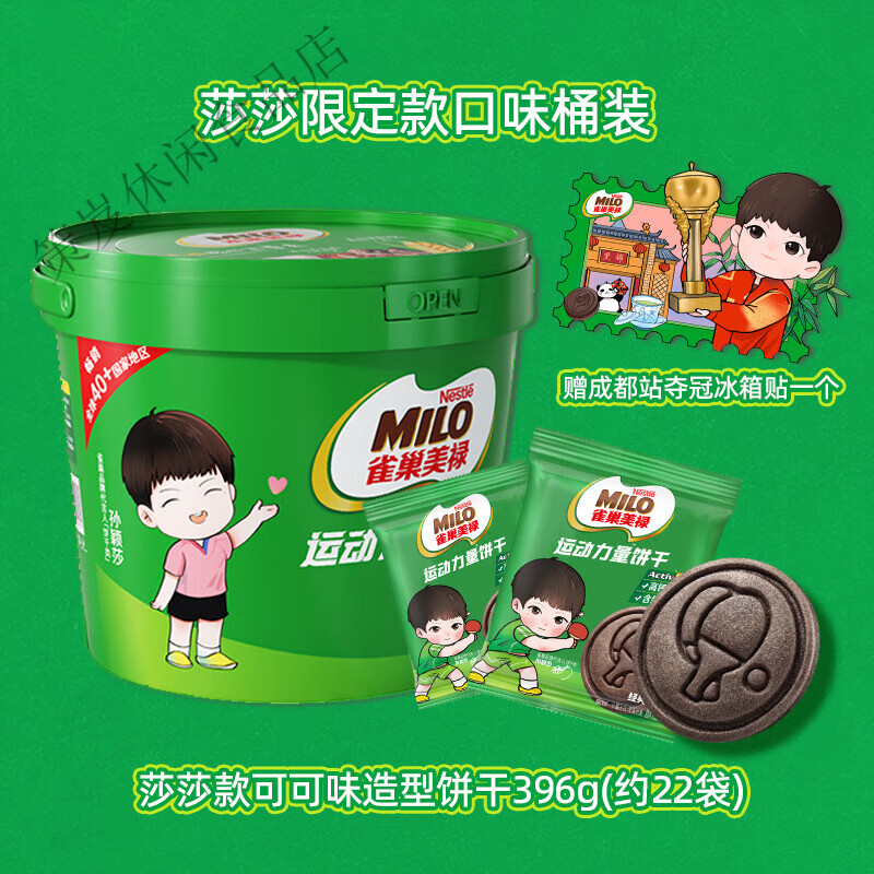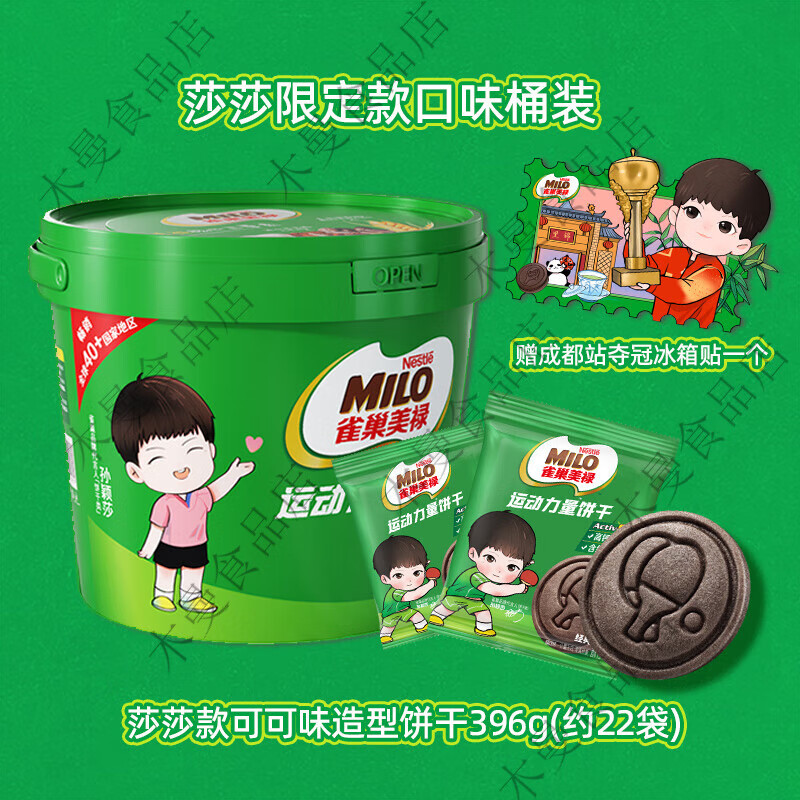 孙颖莎代言美禄运动力量饼干可可味396g桶赠莎莎Q版冰箱贴 成都款冰箱贴美禄可可味桶装396g