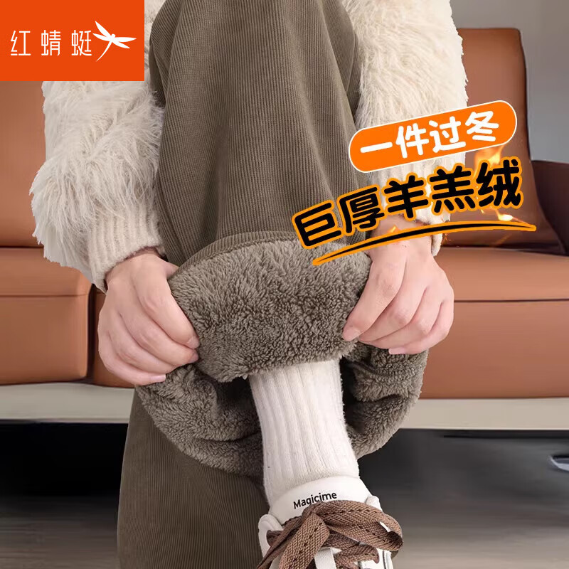 红蜻蜓休闲裤女2025年冬季新款女装加羊羔绒加厚棉裤女士直筒阔腿裤子女 咖啡色长裤- 加绒 羊羔绒 L