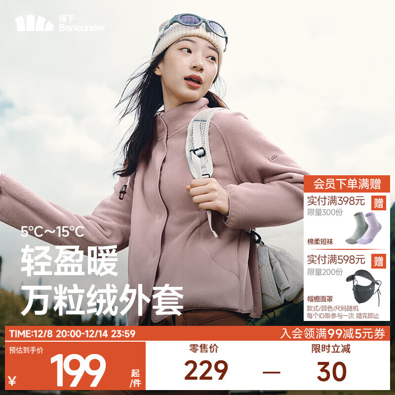 蕉下(beneunder)摇粒绒外套女士秋冬新款时尚休闲保暖抓绒外套万粒绒女装 烟熏褐粉 M