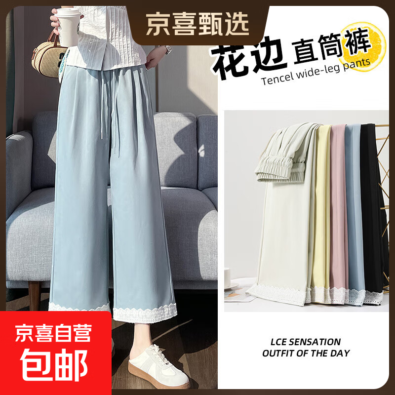 天丝棉九分阔腿裤女装2025年最新款小个子直筒裤 浅蓝色 L