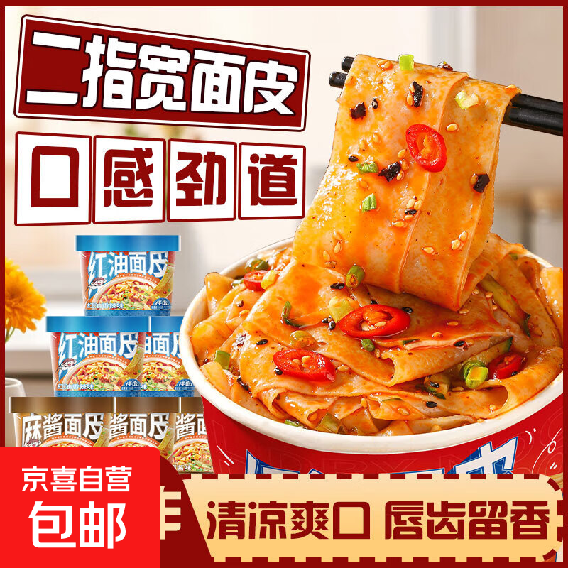 班干部红油面皮桶装酸辣宽面皮方便面凉皮宵夜速食拌面泡面代餐 麻酱+红油【混装】2桶