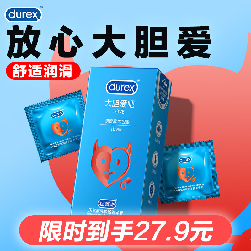 杜蕾斯(durex)避孕套 LOVE10只大胆爱吧装亲密薄 安全套男用情趣用品女性快潮 大胆爱10只