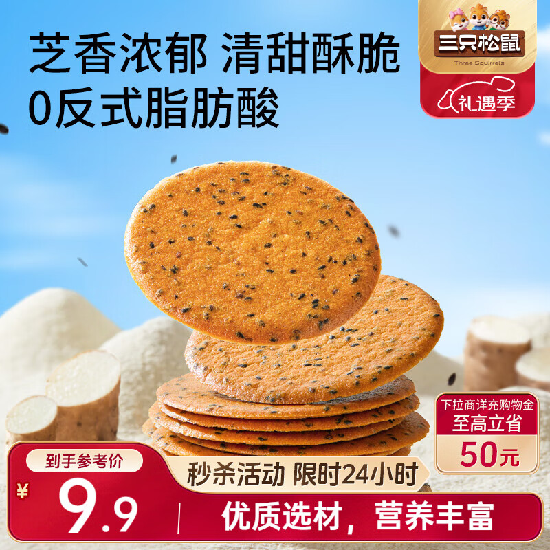 三只松鼠山药芝麻瓦片500g箱装非油炸独立小袋休闲零食老式薄脆饼干点心