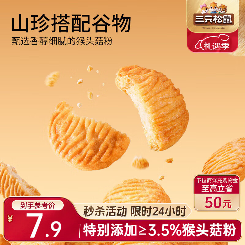 三只松鼠猴头菇小圆饼500g箱装 早餐儿童孕妇营养健康零食饼干点心送礼
