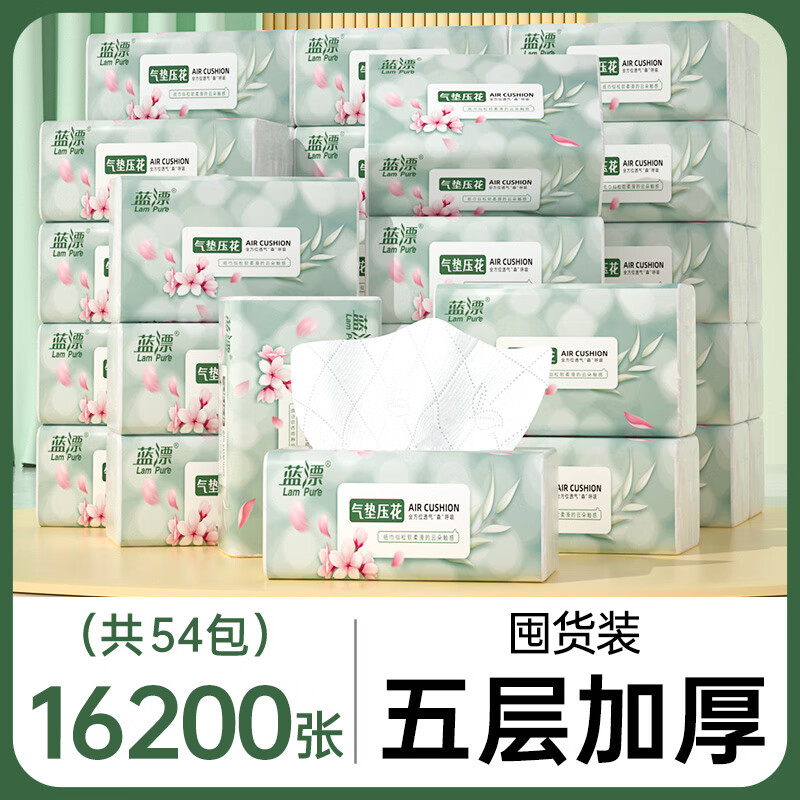 蓝漂气垫抽纸家用实惠装面巾餐巾卫生纸纸抽 5层 60抽*54包 【囤货装】