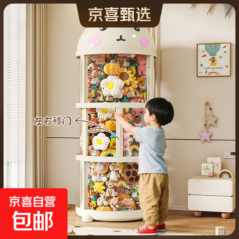 娃娃收纳神器毛绒玩具筒装大口儿童公仔布娃娃玩偶透明置物筐 移门款—38cm直径【南瓜兔4层高175cm】
