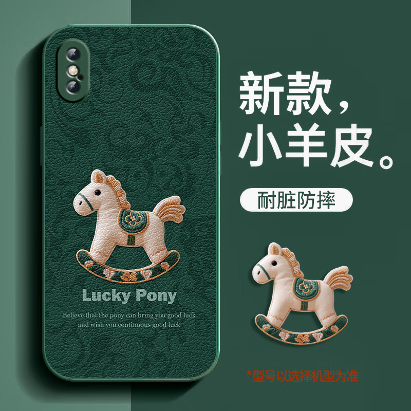 潮妹(CHAOMEI)适用苹果x手机壳新款xs女马年小羊皮iphone xsmax保护套xr贴皮壳iphonex镜头全包防摔 贴皮壳-小木马苍岭绿 iPhone XR