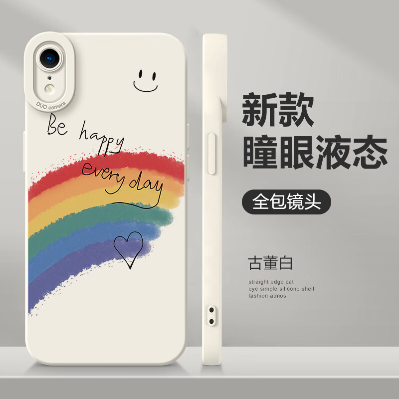 彩绘师 适用苹果xs max手机壳17promax超薄瞳眼液态硅胶iPhoneX/XR全包防摔软壳17Air网红简约笑脸男女款 苹果XR【白彩虹】镜头全包