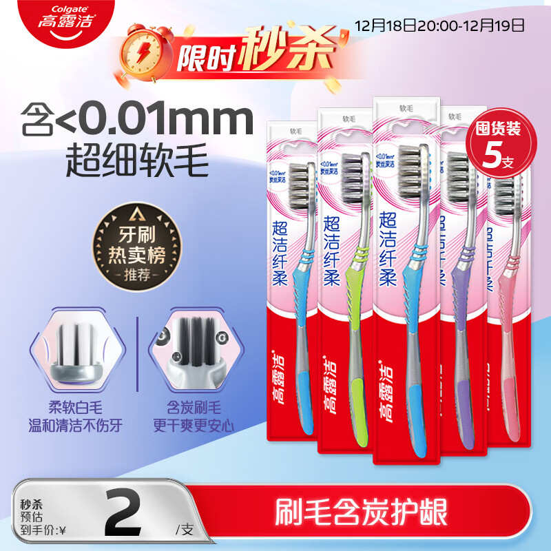 高露洁(Colgate)纤柔备长炭软毛牙刷 5支 超细软毛 深层洁齿 京东自营